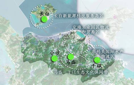 ■ 金塘集裝箱物流港區。重點發展集裝箱物流,兼顧發展大宗散貨物流。一是加快推進金塘北部圍墾和島內集疏運體系建設,重點實施大浦口、上岙、木岙、張家岙和小李岙等集裝箱作業區的碼頭泊位建設,提升港口通過能力。二是加快山潭、大豐等物流園區和西堠臨港產業區建設,拓展物流增值服務。爭取建成集國際貿易、物流分撥、倉儲展示、過境轉運、國際金融等綜合型自由貿易港區或海島型國際離岸型貿易基地。 ■ 舟山跨海大橋海洋風景旅游區。重點建設冊子島西南部和金塘島東北部兩個休閑功能區,形成海上休閑旅游區。一是結合冊子F3大眾賽車、溫泉度假等項目建設,打造冊子海洋康體旅游度假區。二是結合金塘灣商務酒店和大橋建設展覽館等項目建設,打造以商務展覽為主題的金塘灣度假旅游區。三是結合大鵬島新農漁村建設,加強民宅群和村落保護整治,形成具有濃郁海洋文化的大鵬島村樂居區。 ■ 西部油品物流區。一是推進中石化冊子原油碼頭二期建設,至2015年達到年吞吐量1億噸,成為油品中轉貿易儲存基地。二是以岑港煙墩、外釣區塊為核心區,以大型企業為支撐,以油品儲運銷售為重點,打造國家戰略油品儲運基地和商品油儲運銷售基地。 ■ 老塘山國際糧油物流區。依托老塘山國際糧油中轉加工基地,大力推進進口糧食減載市場、糧食中轉市場和飼料糧輻射市場等建設,積極發展糧食加工業務,打造糧食中轉加工配送基地。 ■ 雙橋綜合服務區。重點發展商貿、物流和旅游業。一是加快發展汽車4S貿易市場、糧油集散中心等各類新型商貿業態。二是以茶人谷生態旅游區為基礎,聯動開發石礁生態觀光園,打造雙橋生態旅游區。 (四)優化開發以西碼頭為重要節點的北部服務業帶 依托水產品加工、船舶修造、臨港石化等產業基礎,推進山海結合的自然人文資源開發利用,著力推進形成“三區一帶”的產業空間布局。“三區”即西碼頭國際水產物流區,定海工業園區物流和貿易區,以及長白新能源科技服務島區。“一帶”即馬岙—小沙—干石覽島村生態文化休閑帶。 圖表4??以西碼頭為重要節點的北部服務業帶