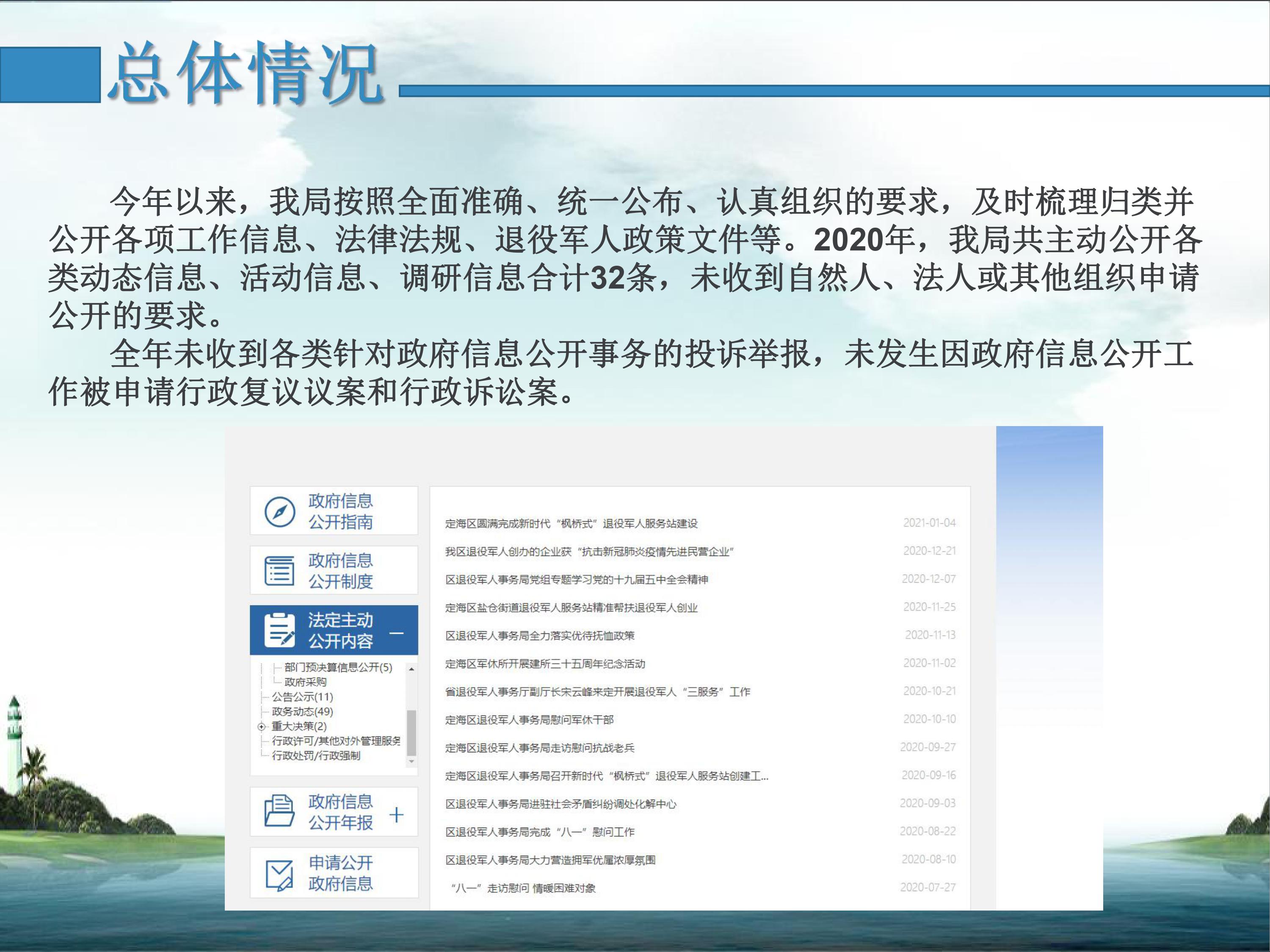 舟山市定海區(qū)退役軍人事務局2020年度政府信息公開工作年度報告