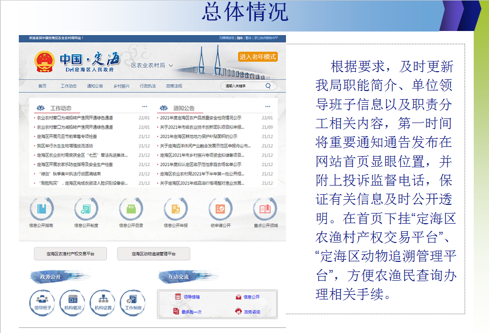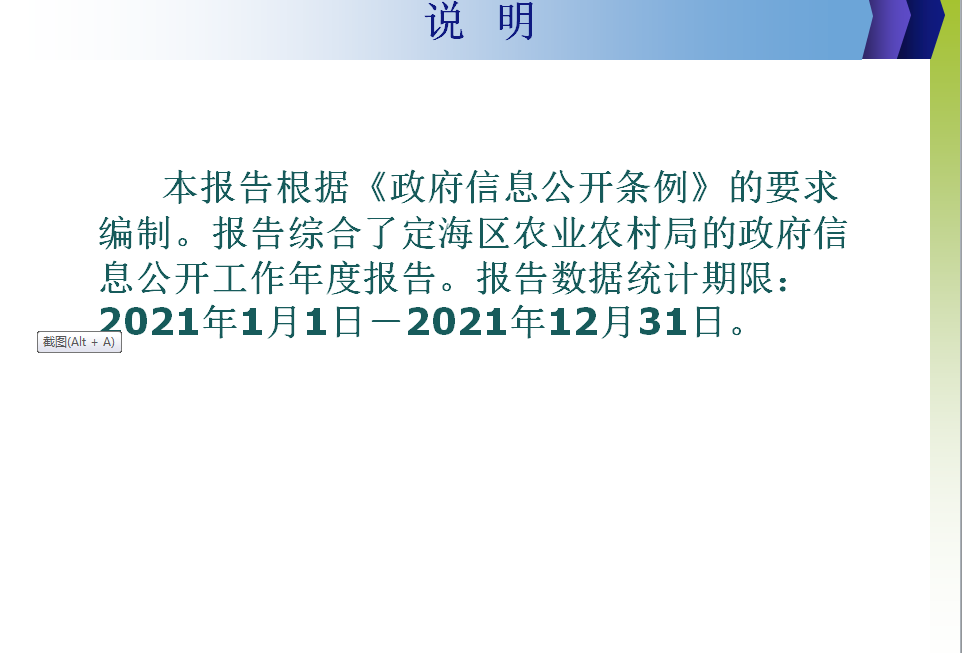 定海區農業農村局2021年度政府信息公開工作報告
