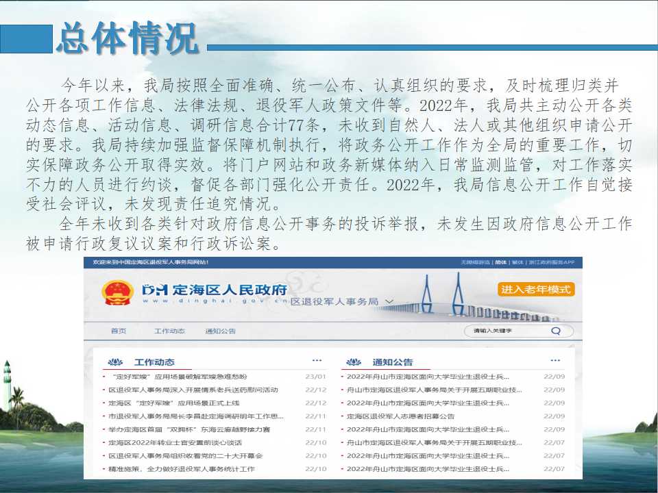 2022年度舟山市定海區退役軍人事務局信息公開工作年度報告
