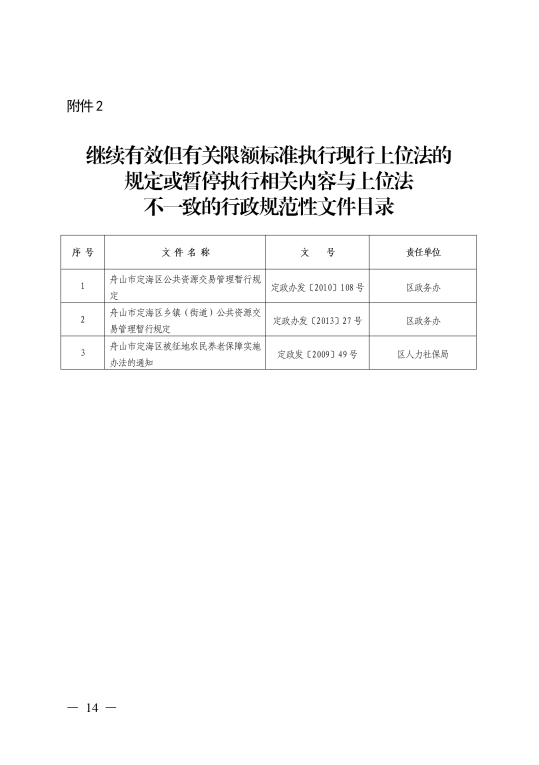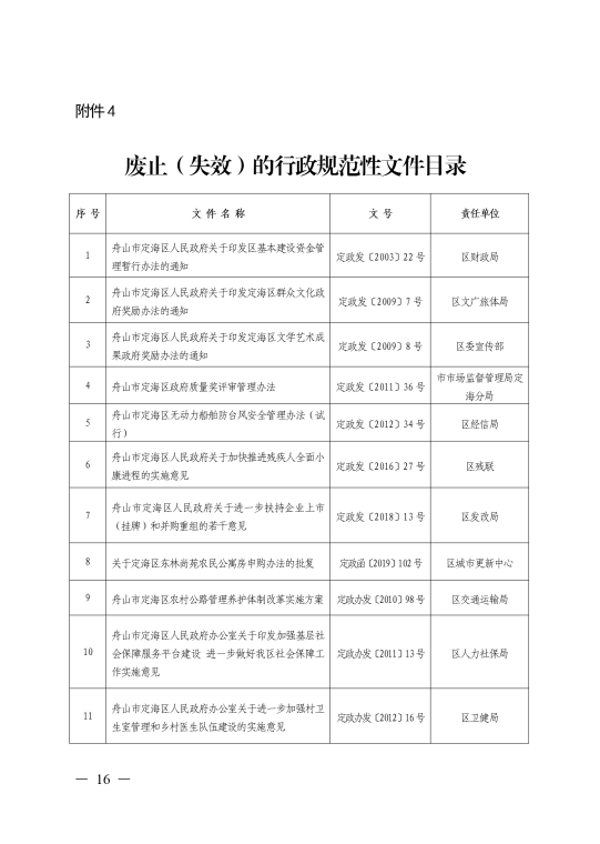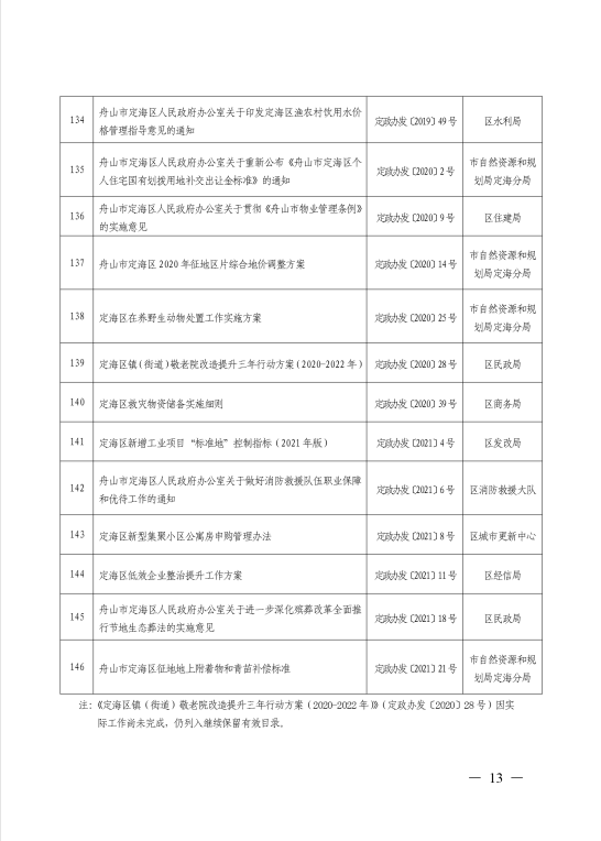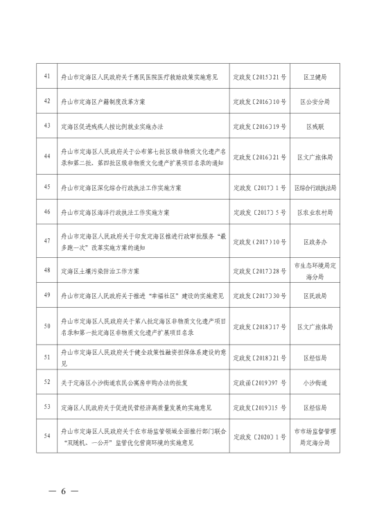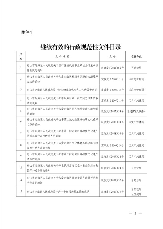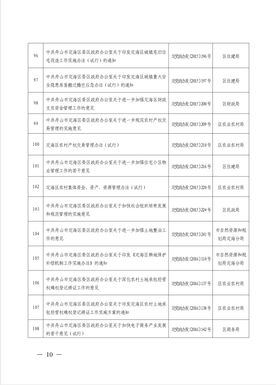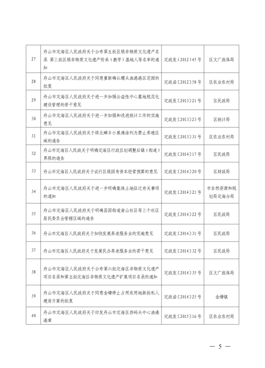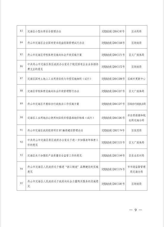 | 舟山市定海區人民政府辦公室關于公布區政府及區政府辦公室行政規范性文件清理結果的通知 | ||