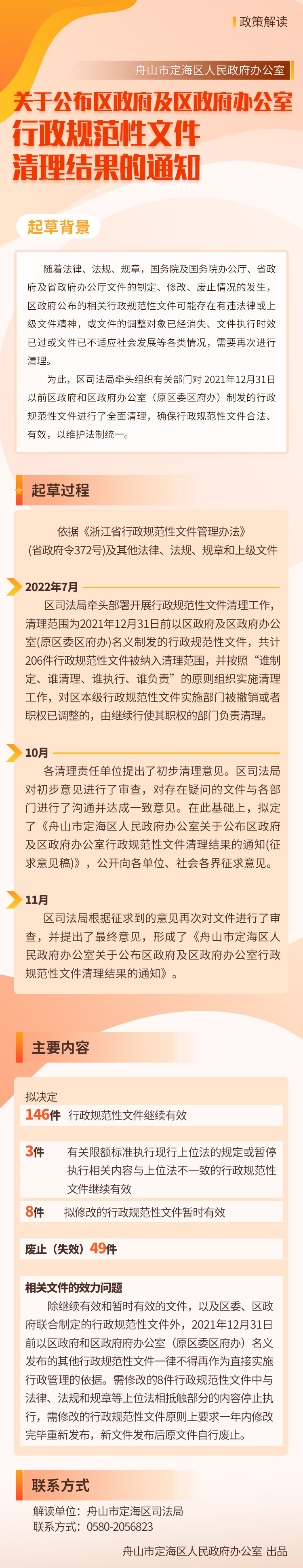 | (圖解)《舟山市定海區(qū)人民政府辦公室關(guān)于公布區(qū)政府及區(qū)政府辦公室行政規(guī)范性文件清理結(jié)果的通知》政策解讀 | ||