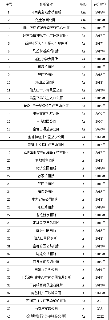 定海區(qū)旅游廁所建設信息