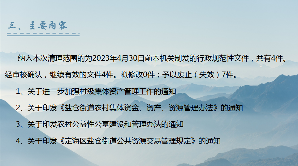 (圖解)《舟山市定海區人民政府鹽倉街道辦事處關于公布行政規范性文件清理結果的通知》政策解讀