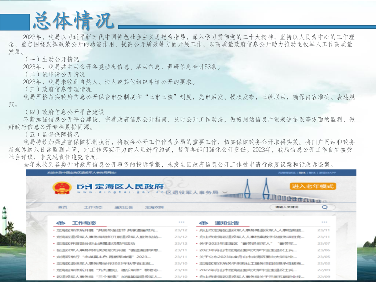 舟山市定海區(qū)退役軍人事務(wù)局2023年度政府信息公開工作年度報告
