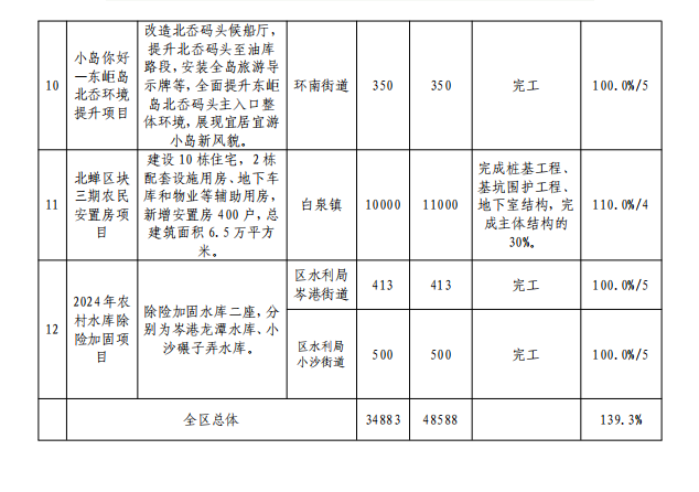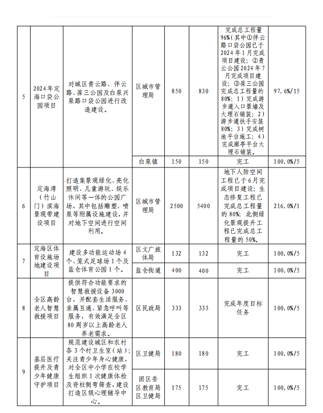 2024年定海區政府民生實事代表票決項目11月份情況表
