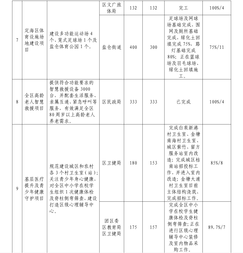 2024年定海區政府民生實事代表票決項目7月份情況表