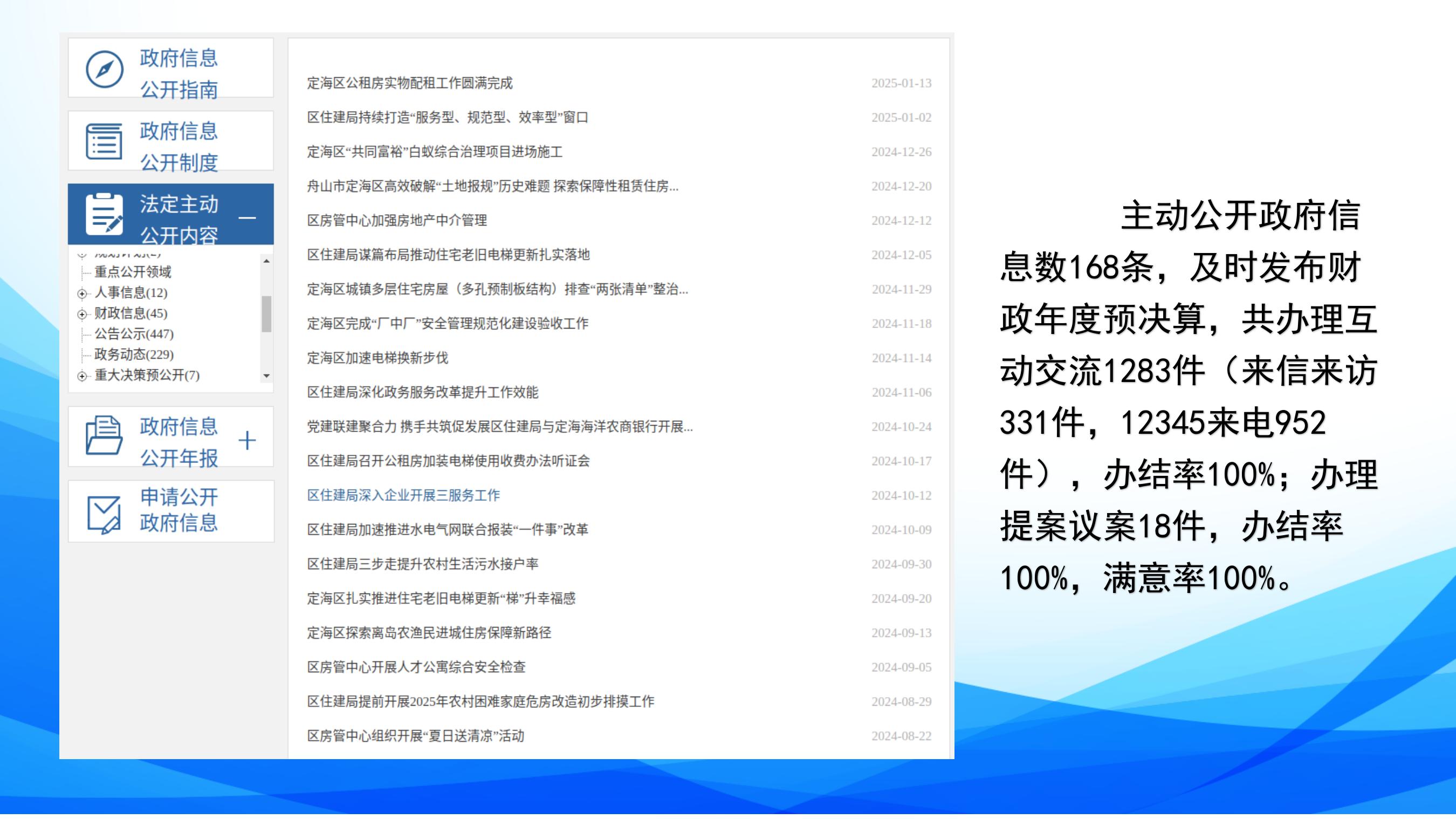 2024年定海區(qū)住建局政府信息公開工作年度報告