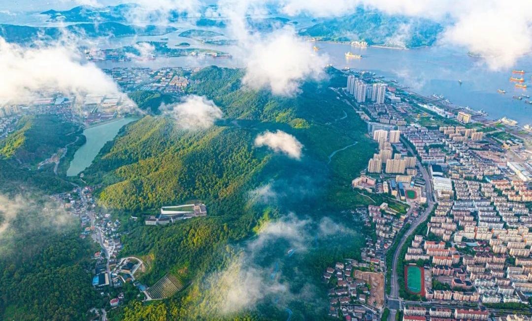 云霧繚繞時(shí)如立云端,腳下是星羅棋布的定海城與翡翠般的群島鏈。春日午后,薄霧散盡時(shí),可清晰望見大橋如銀鏈橫臥碧波。