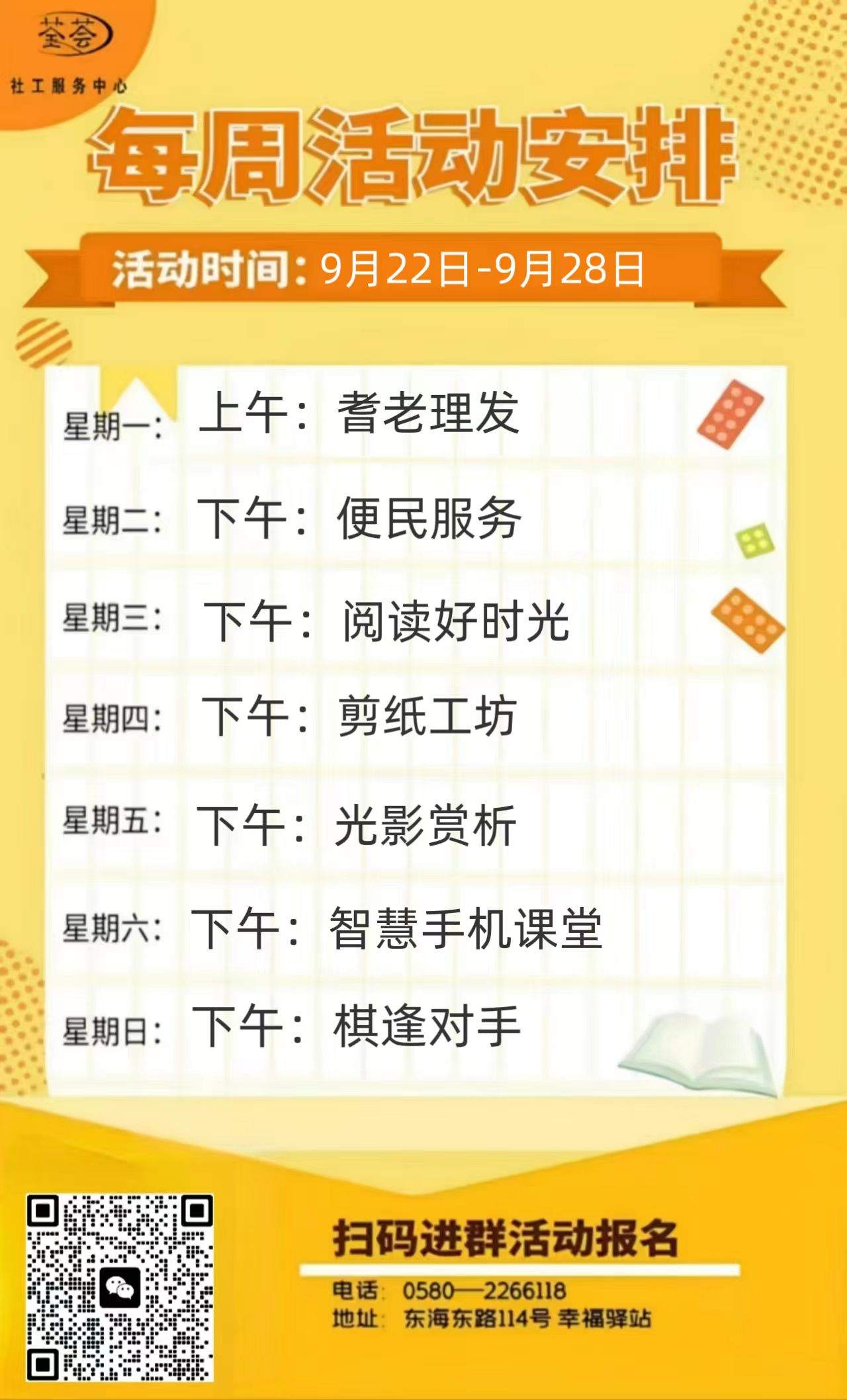 定海區“幸福+”民生服務陣地|公益服務一周活動預告(9.22-9.28)
