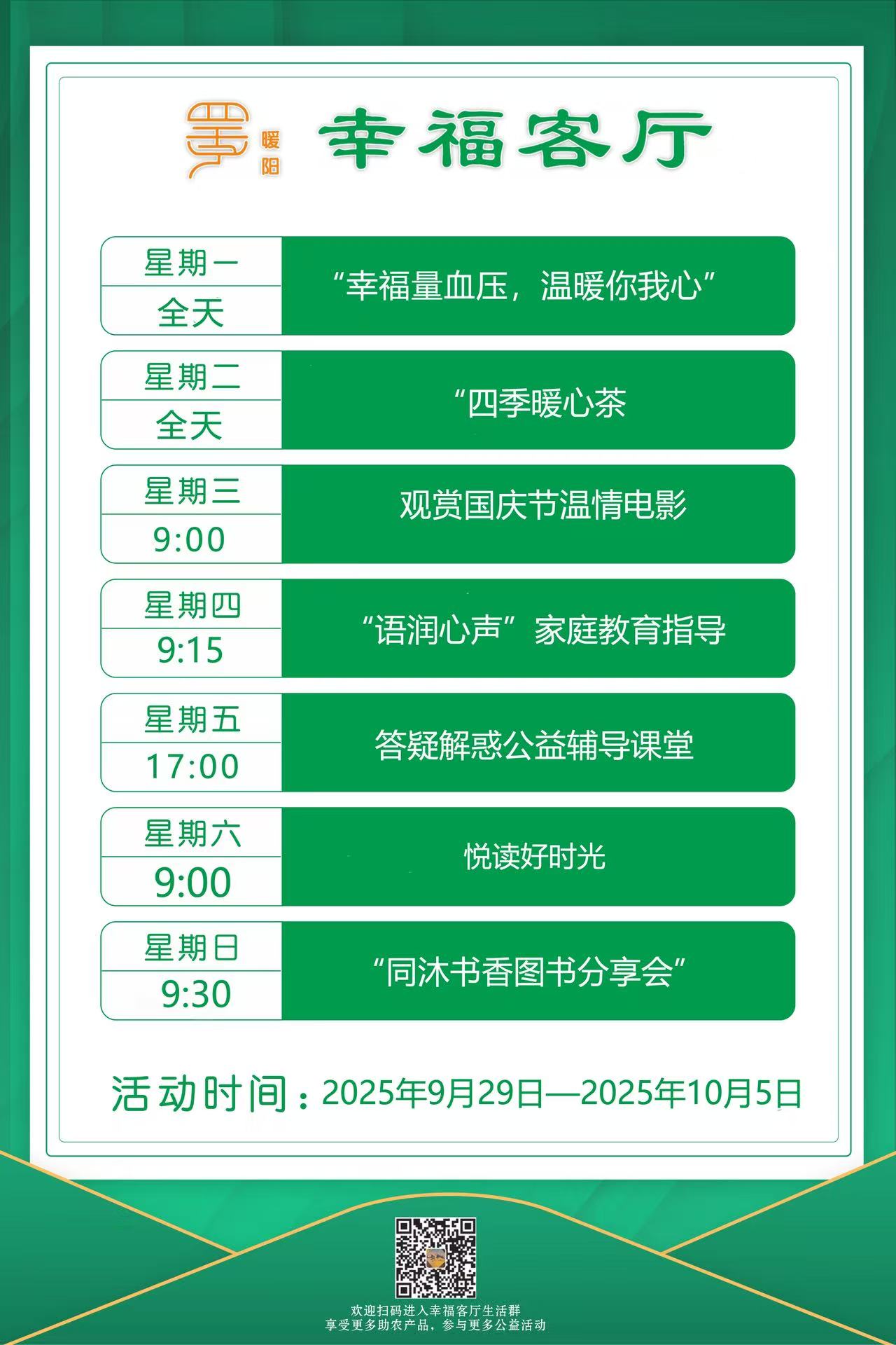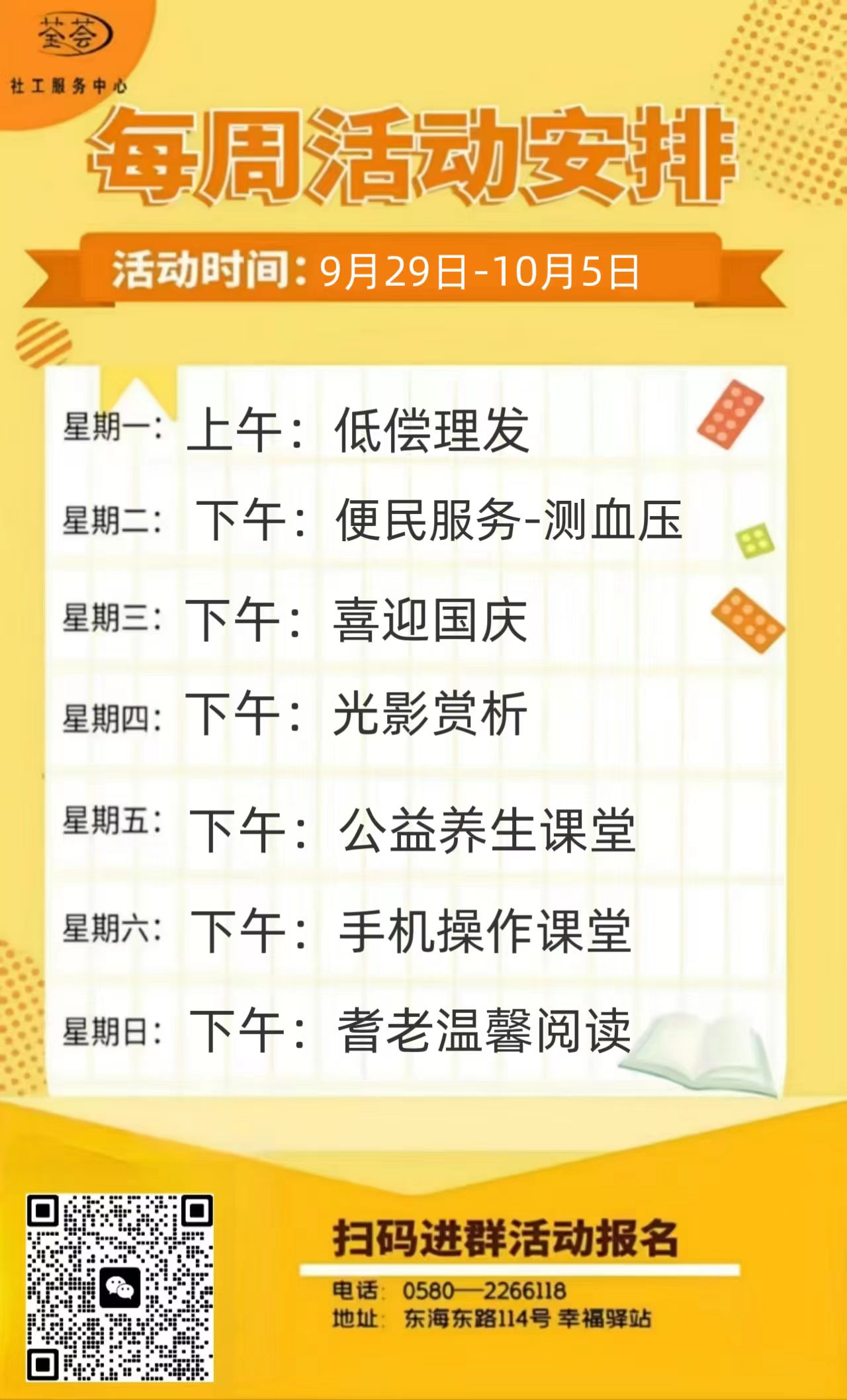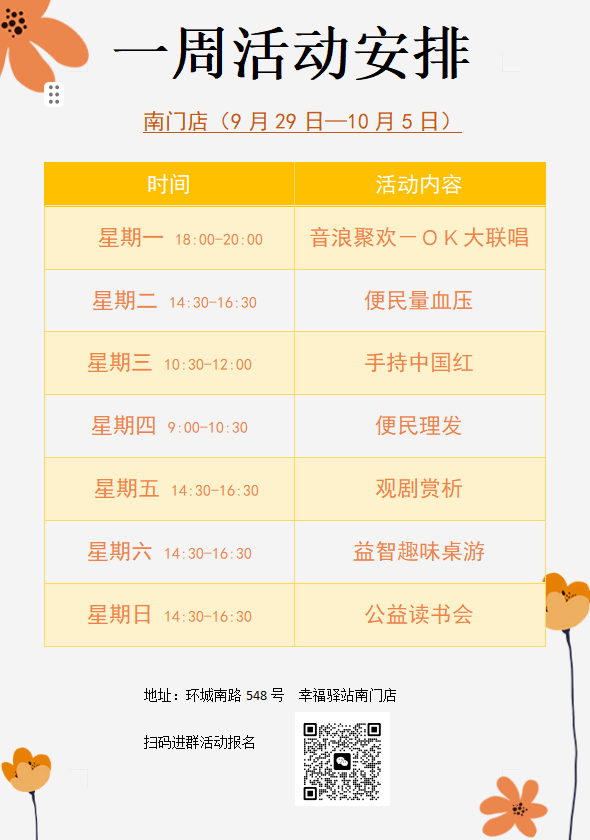 定海區(qū)“幸福+”民生服務(wù)陣地|公益服務(wù)一周活動(dòng)預(yù)告(9.29-10.5)