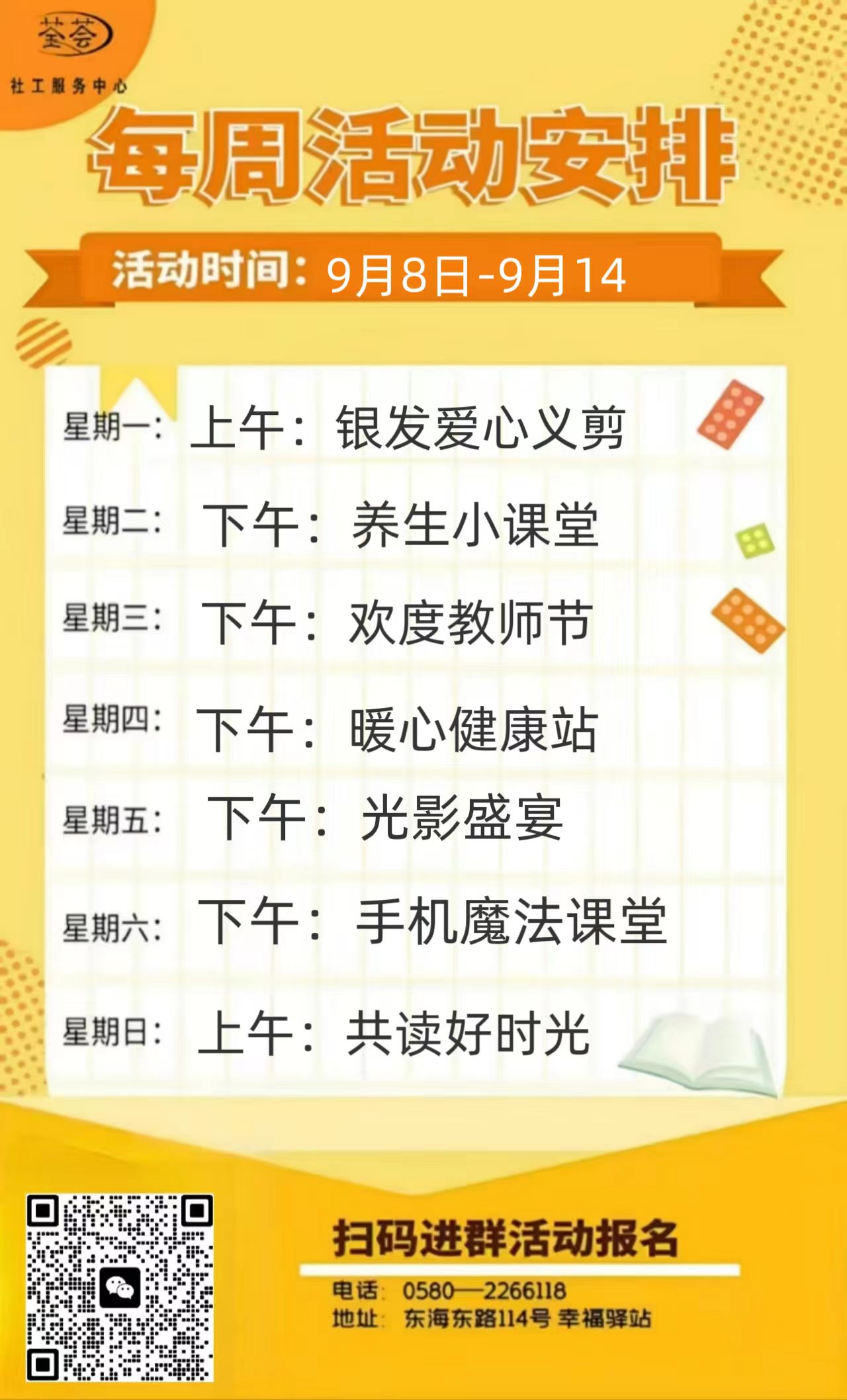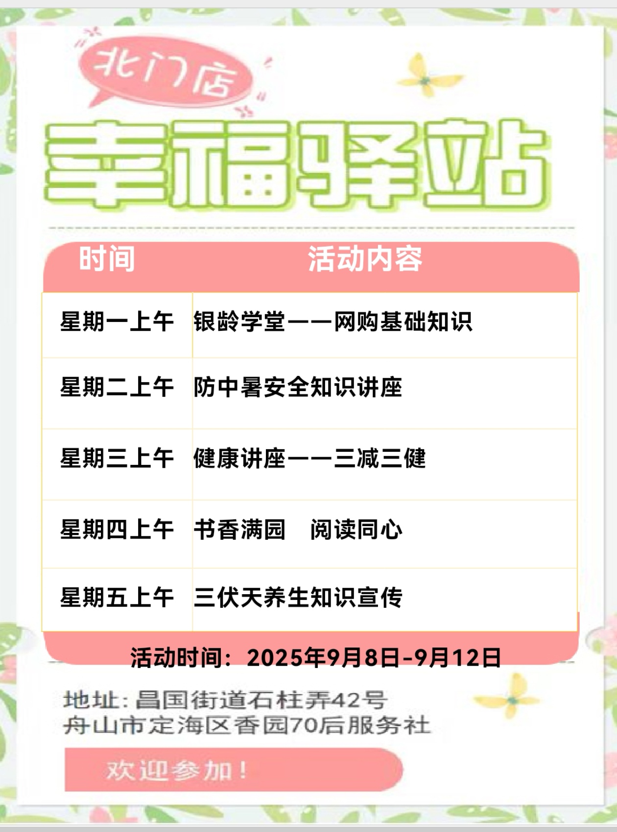定海區(qū)“幸福+”民生服務(wù)陣地|公益服務(wù)一周活動(dòng)預(yù)告(9.8-9.14)