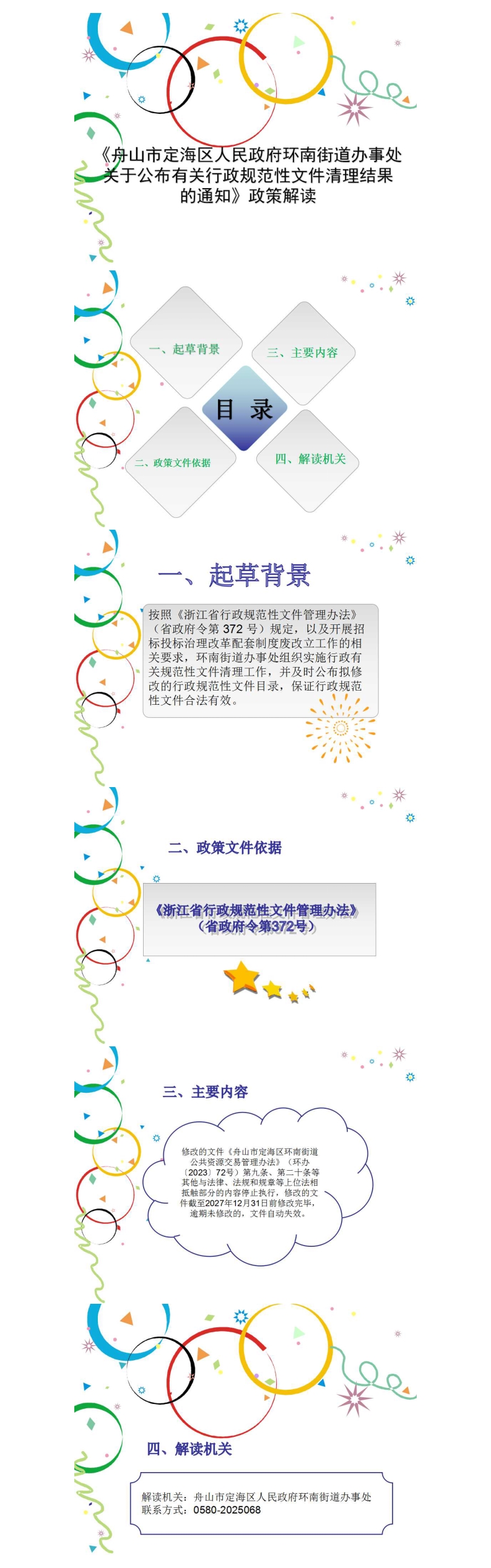 《舟山市定海區人民政府環南街道辦事處關于公布有關行政規范性文件清理結果的通知》政策解讀
