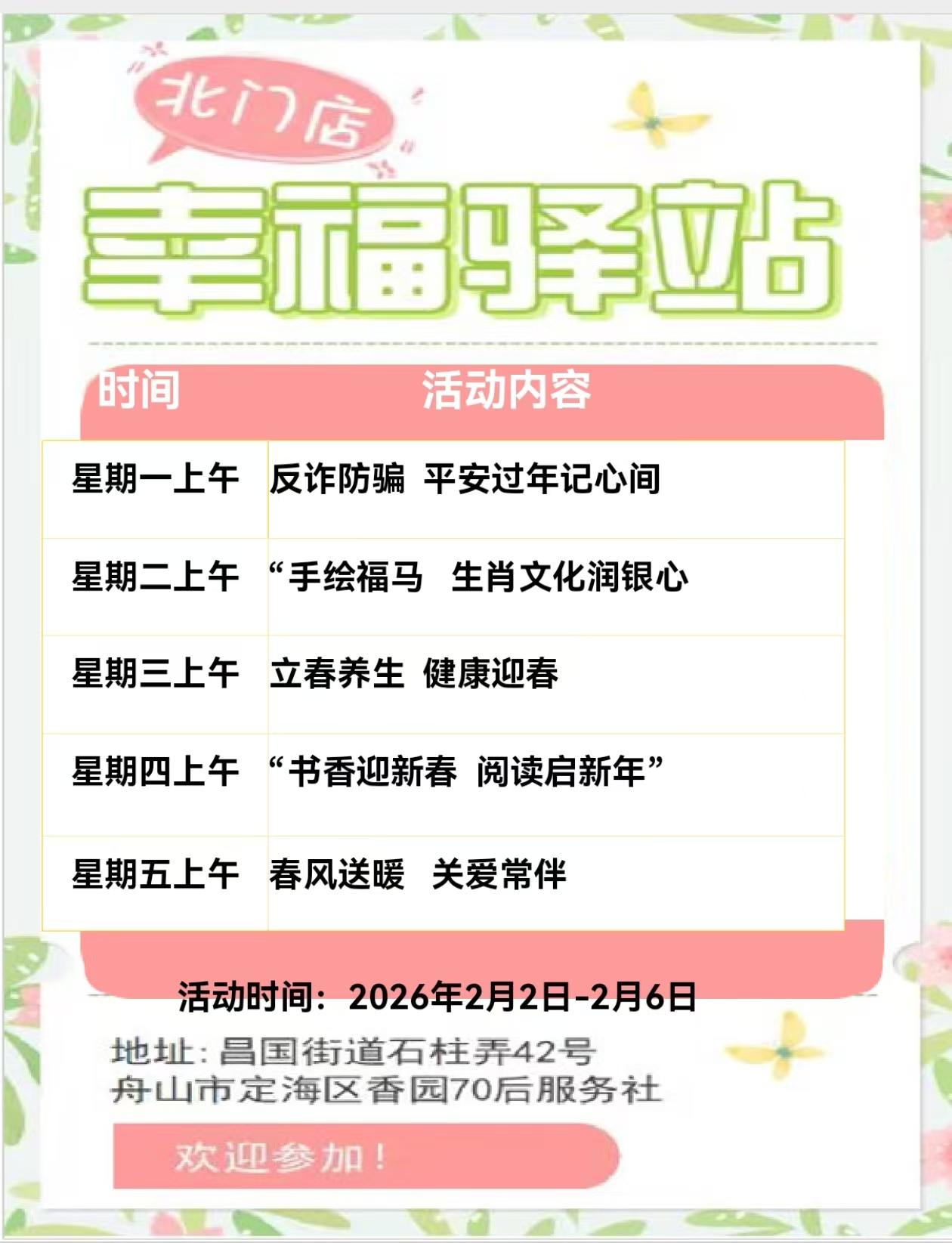 定海區“幸福+”民生服務陣地|公益服務一周活動預告(2.2-2.8)