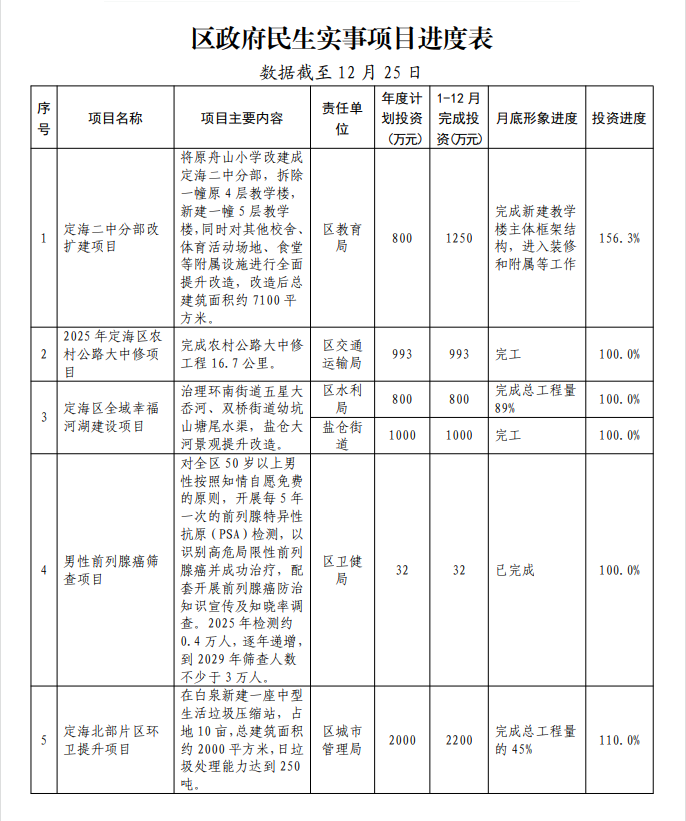 2025年區政府民生實事項目進度表(12月)