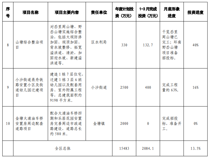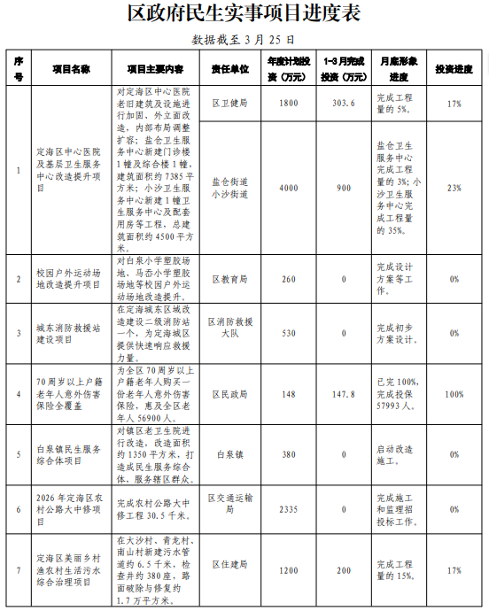 2026年區政府民生實事項目進度表(1-3月)