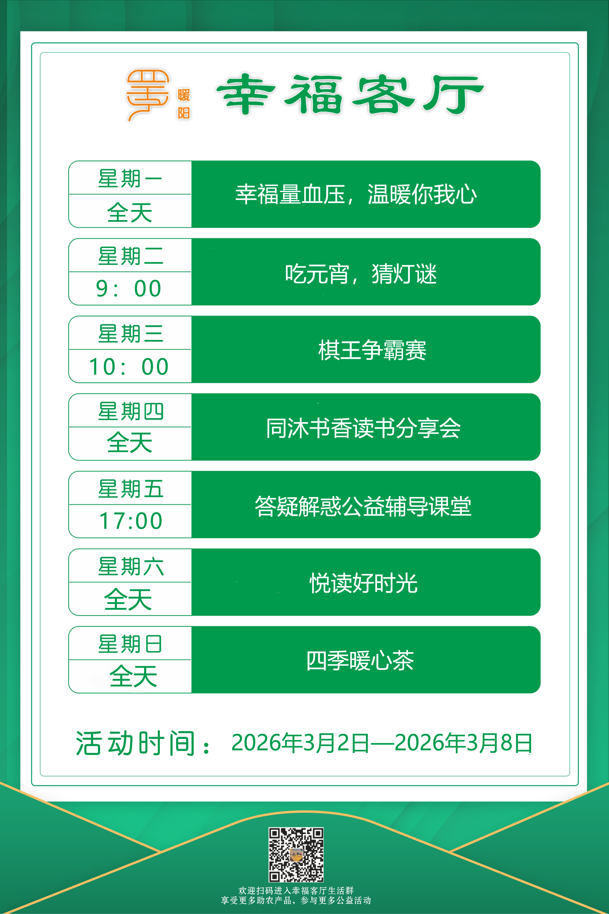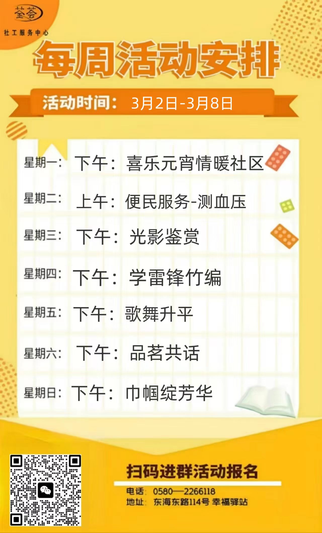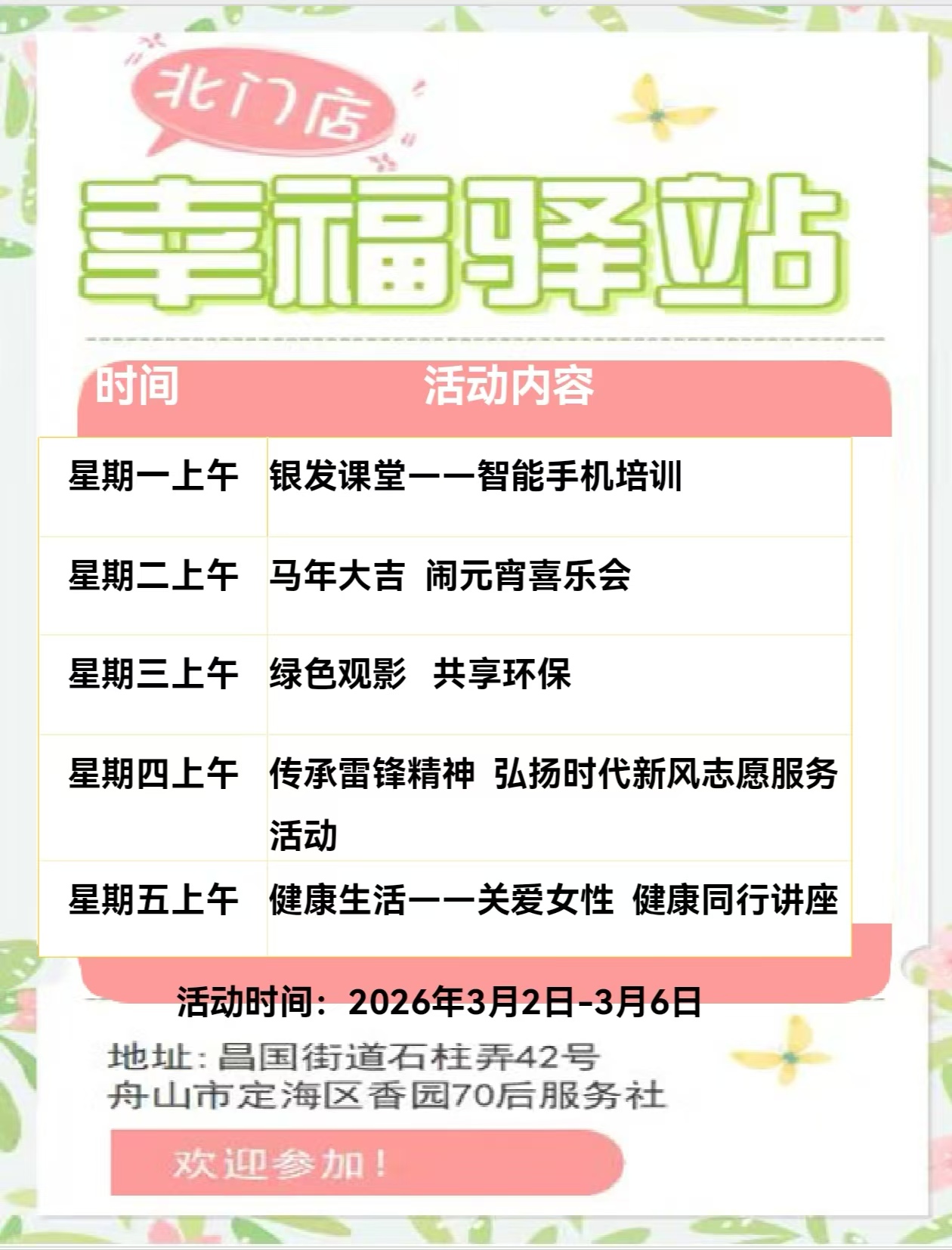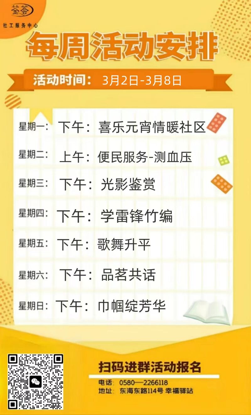 定海區(qū)“幸福+”民生服務(wù)陣地|公益服務(wù)一周活動(dòng)預(yù)告(3.2-3.8)