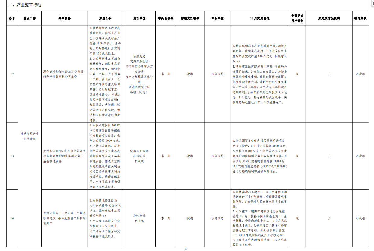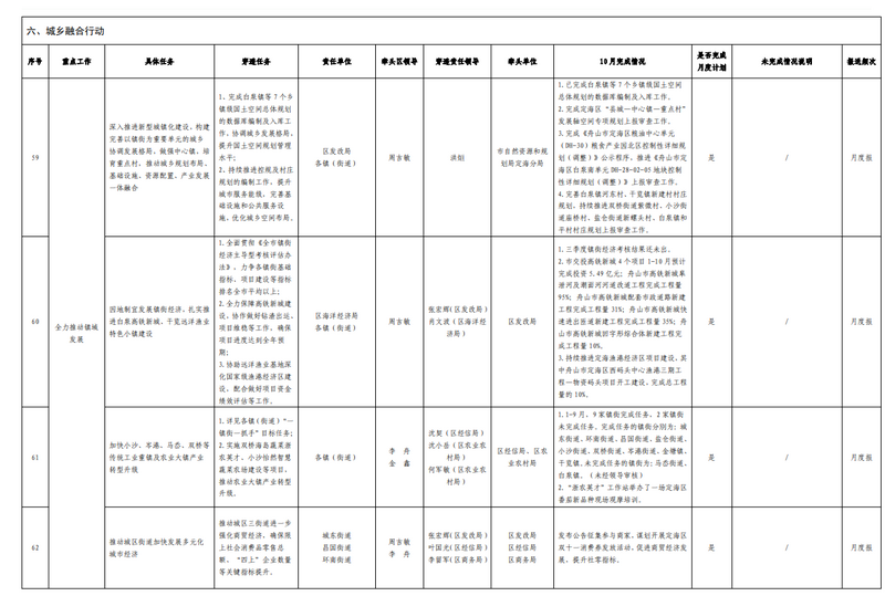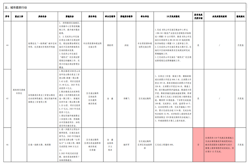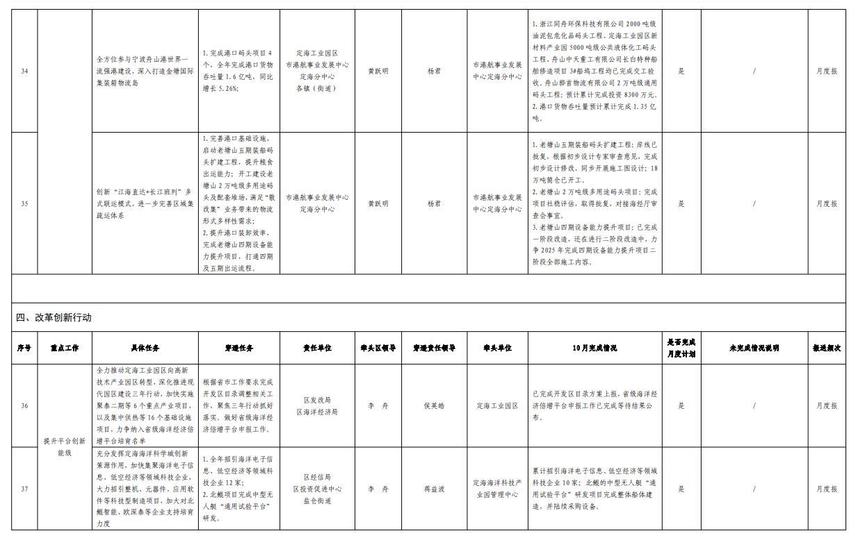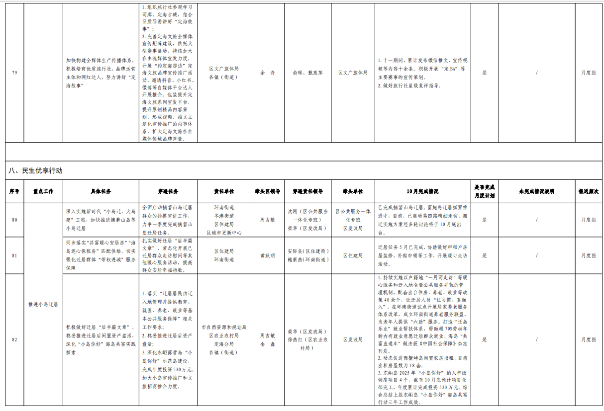 2025年10月定海區政府“十大行動”任務(政府工作報告重點工作)完成情況
