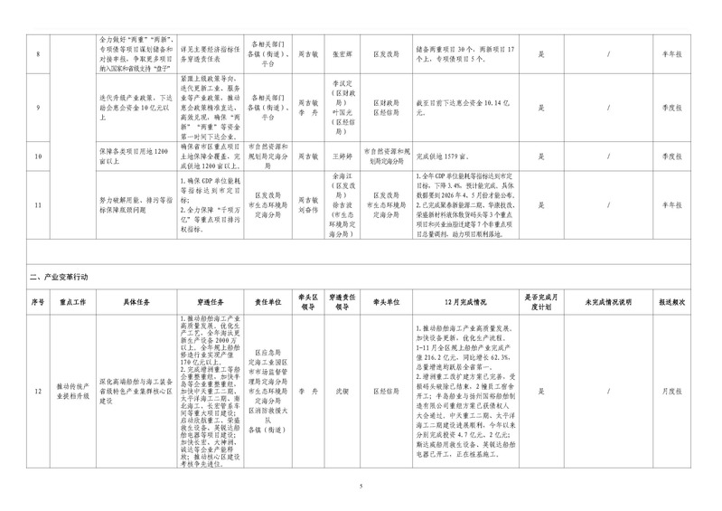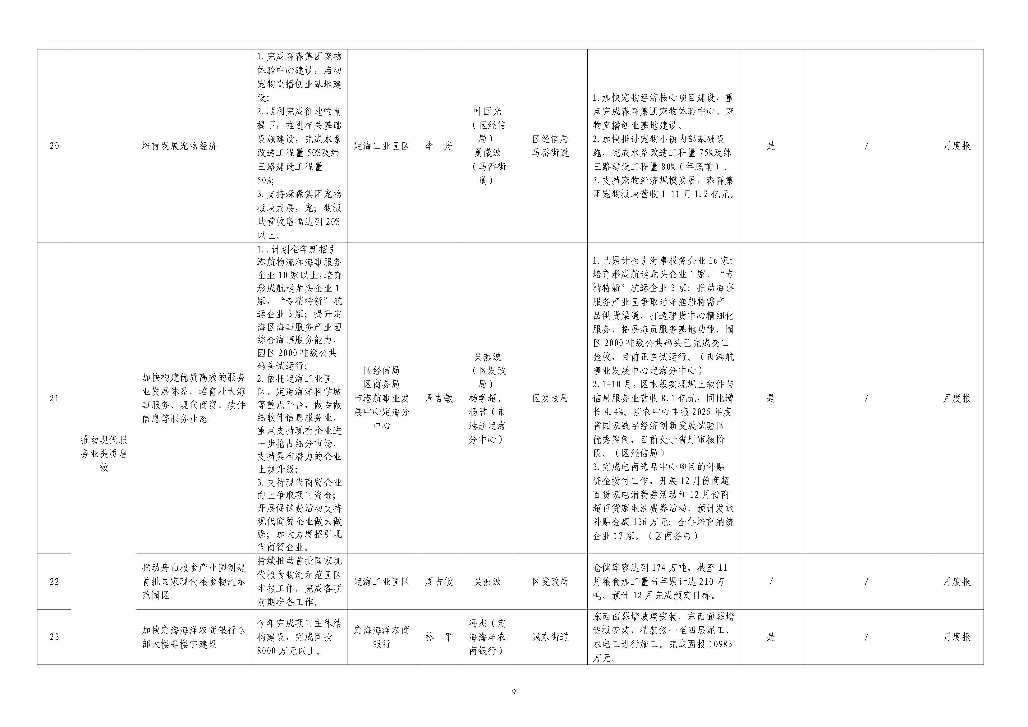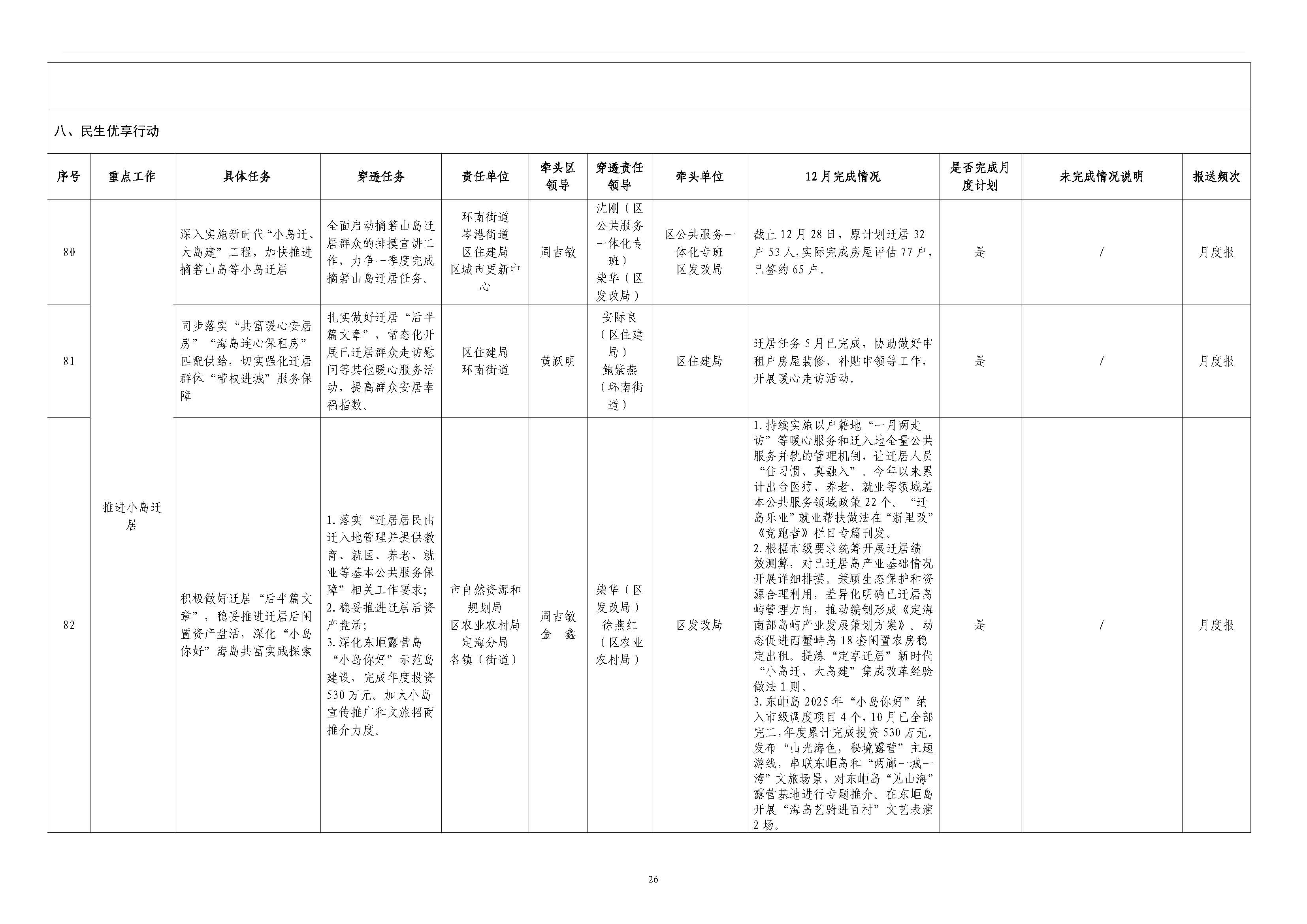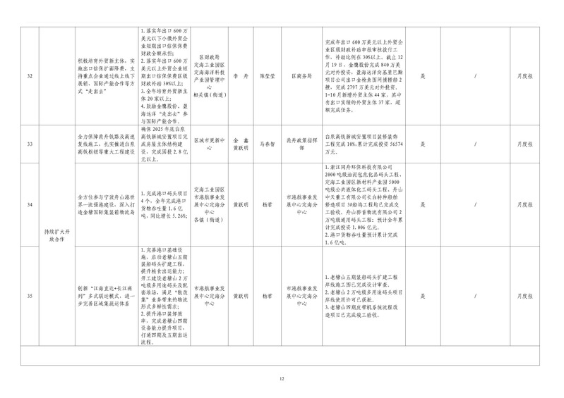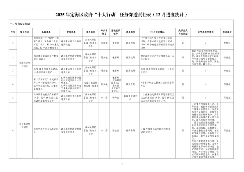 2025年12月定海區政府“十大行動”任務(政府工作報告重點工作)完成情況