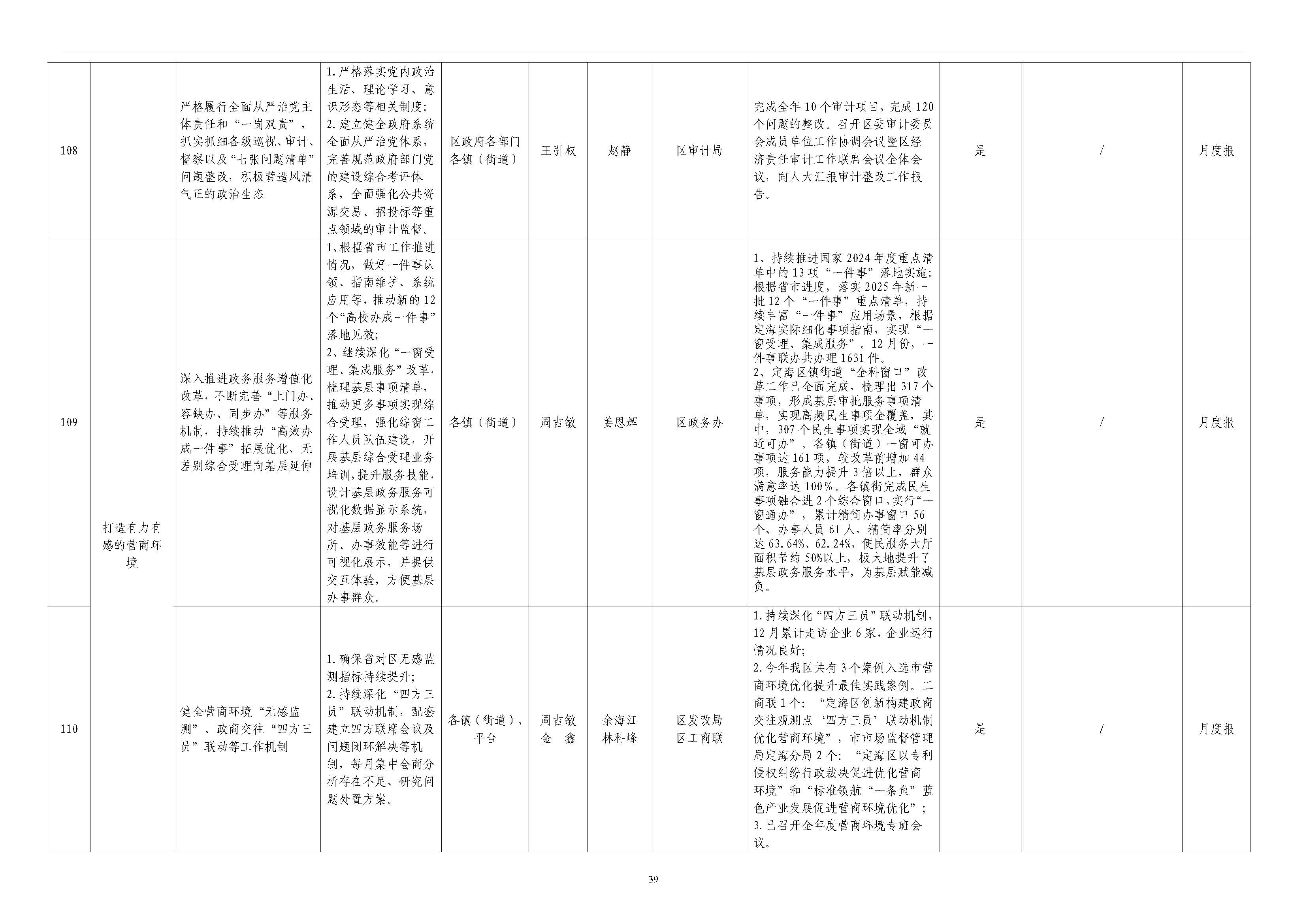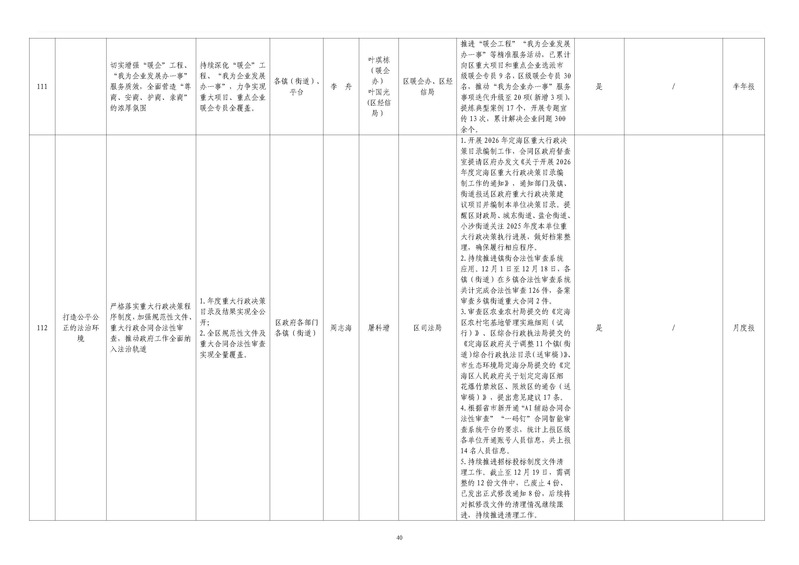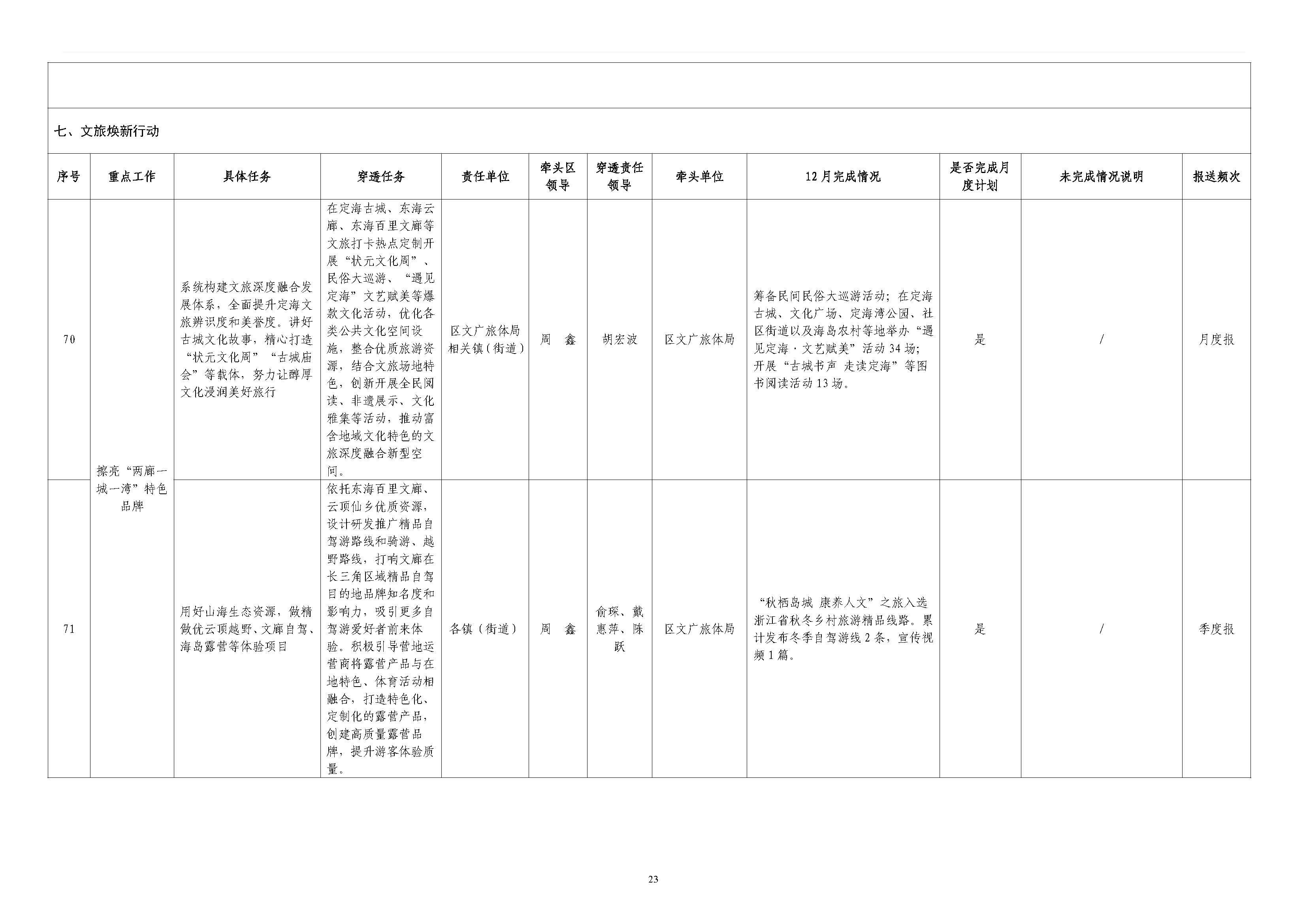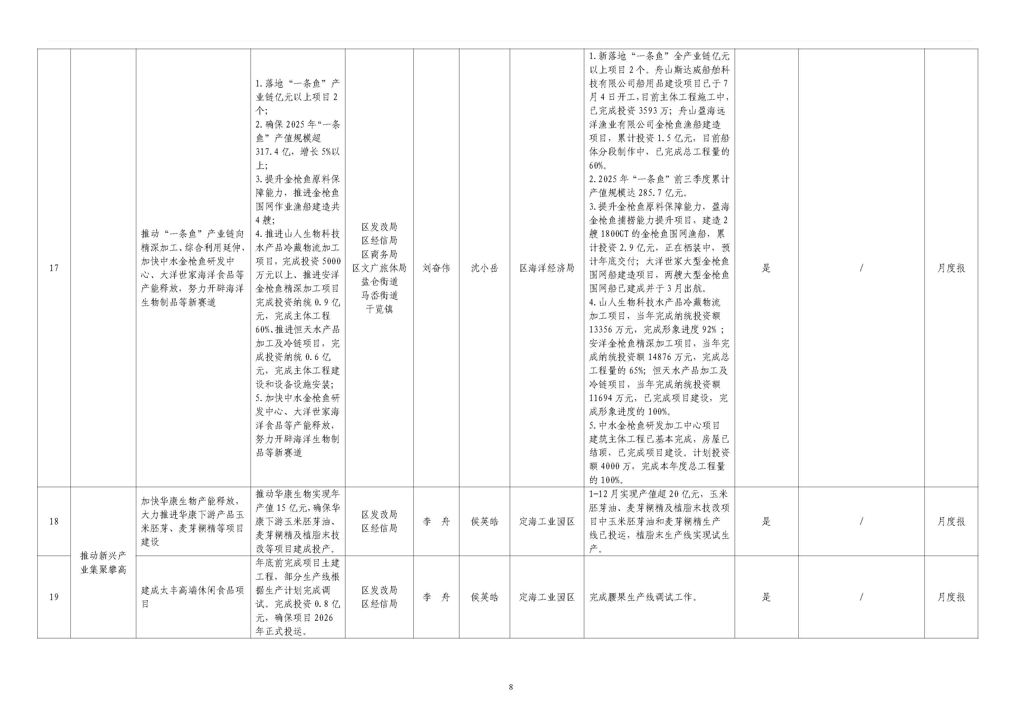 2025年12月定海區政府“十大行動”任務(政府工作報告重點工作)完成情況