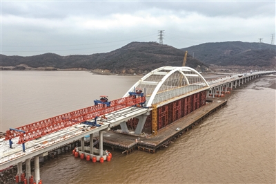 2月7日下午,浙江省舟山市定海區(qū)金塘島金鵬大橋建設(shè)現(xiàn)場,隨著最后一片預(yù)制箱梁精準(zhǔn)落位,金鵬大橋主橋兩側(cè)箱梁架設(shè)順利完成,標(biāo)志著這座省內(nèi)首個(gè)跨海網(wǎng)狀系桿特大拱橋主線實(shí)現(xiàn)全線貫通。