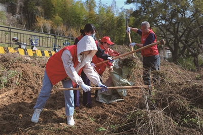 大家分工合作,拔除雜草、撿拾垃圾、清理雜物。指尖的忙碌里,藏著對家園的熱愛。曾經(jīng)雜草叢生閑置地,經(jīng)集中整治后“煥然一新”,為春日家園添上一抹清亮底色。
