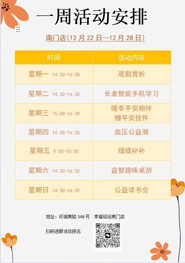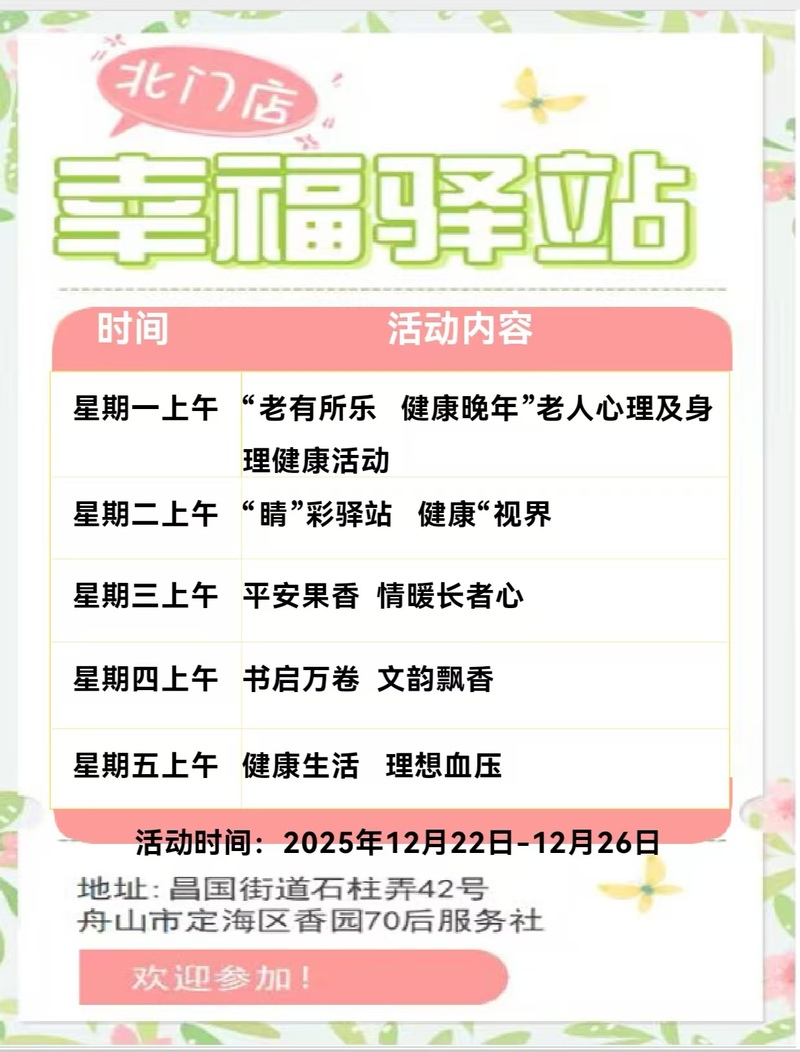 定海區“幸福+”民生服務陣地|公益服務一周活動預告(12.22-12.28)