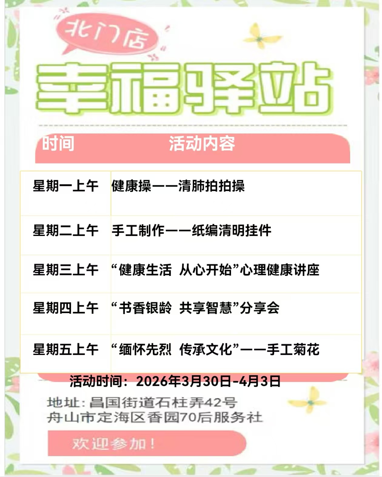 定海區(qū)“幸福+”民生服務陣地|公益服務一周活動預告(3.30-4.5)