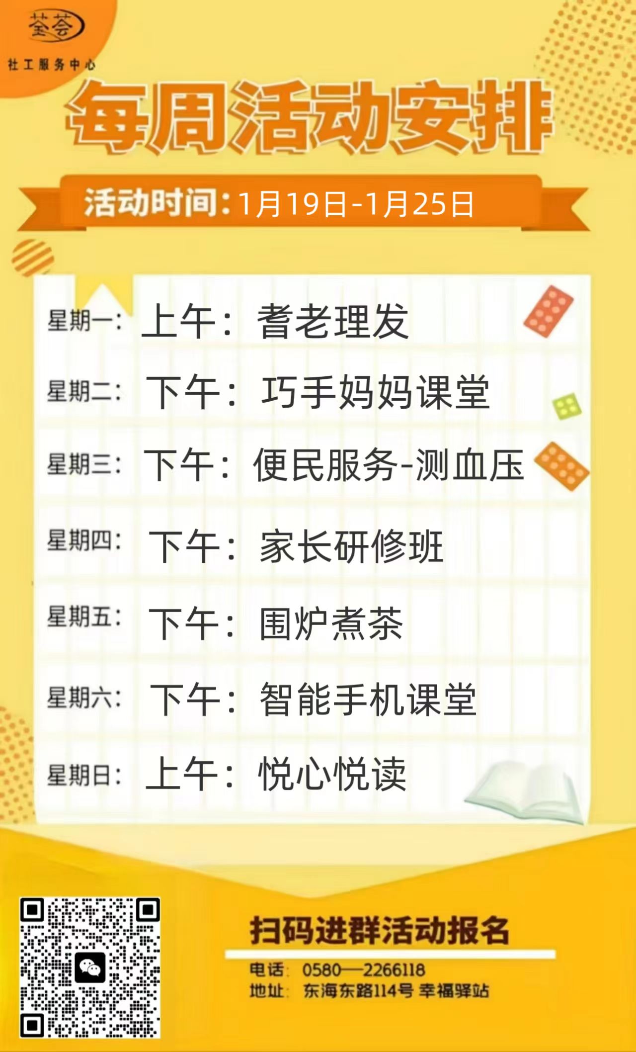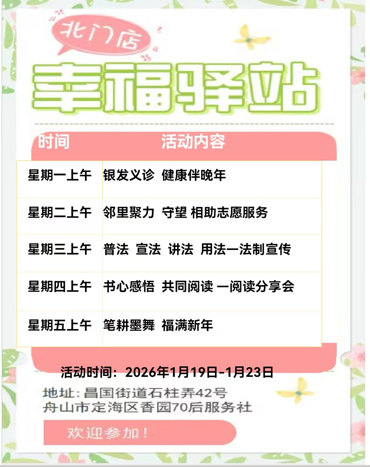 定海區“幸福+”民生服務陣地|公益服務一周活動預告(1.19-1.25)