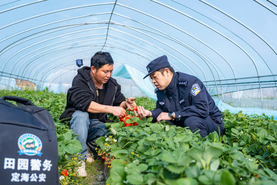 近日,定海區公安分局雙橋派出所民警深入轄區田間大棚,以“田園警務”為抓手,把反詐知識送到大家身邊,精準護航春耕生產。