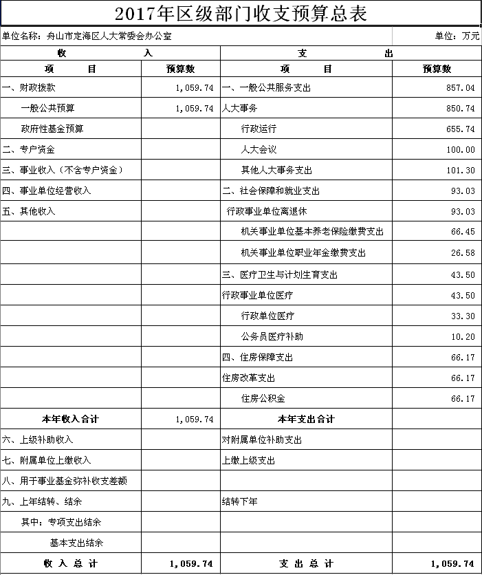 2017年度定海區人大常委會辦公室部門預算