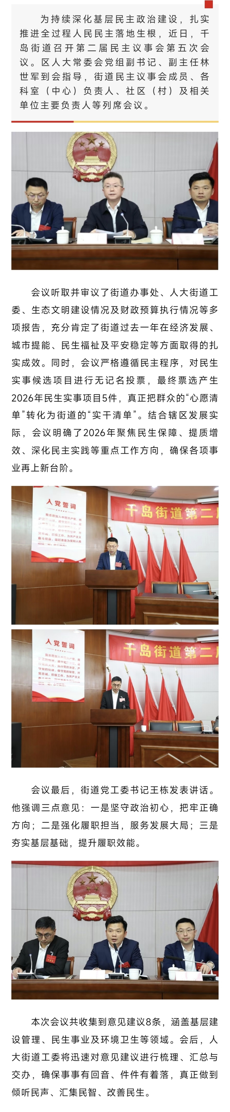 鎮(zhèn)街人大丨千島街道召開第二屆民主議事會(huì)第五次會(huì)議